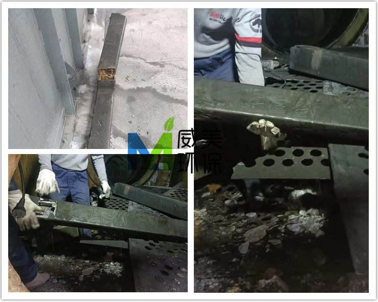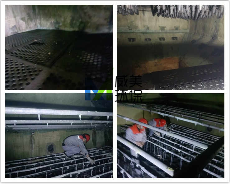 威美環保工作人員到達湖北后立即對黃磷渣氣濕電除霧器進行內部檢查