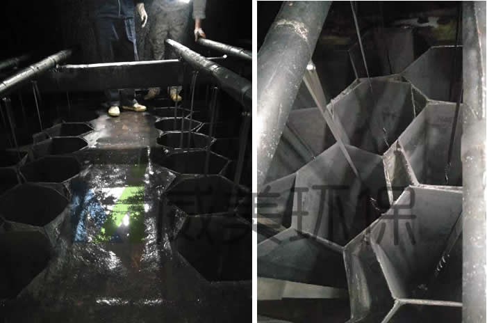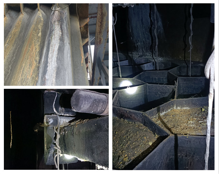 3.濕電除霧器氣體分布板有無損壞、脫落。有時煙氣流速較低部位氣流分布板有可能產生積灰、堵塞,需要檢查并進行人工清掃。