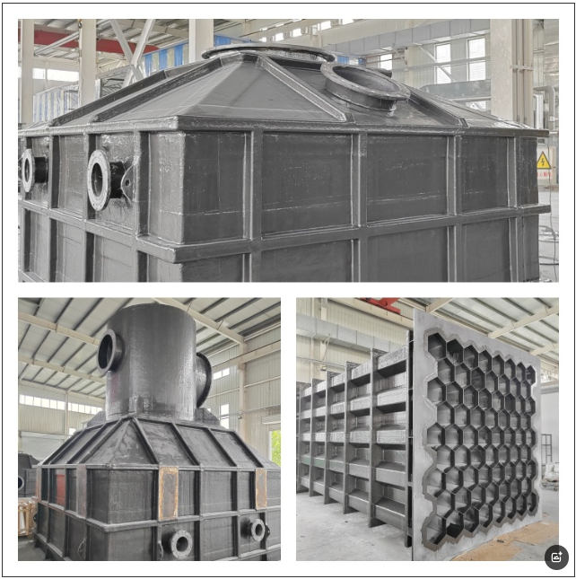 3w氣量熔鋅爐煙氣處理濕電除霧器生產完畢待交貨。該設備處理煙氣量≤30000m³/h,煙氣溫度≤80℃,煙氣成分為熔鋅爐煙氣,除霧效率>90%,設備負壓運行,運行壓力-5000Pa。